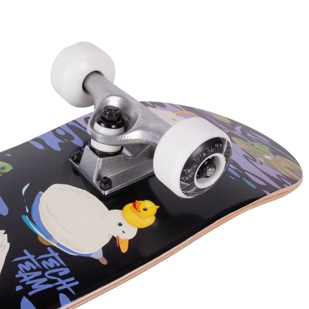 Встречайте скейтборд Tech Team Aliens 2024 голубой - идеальный выбор для тех, кто ищет стиль и функциональность. Скейтборд оснащен колесами из PU размером 54x36 мм с жесткостью 90A и подшипниками ABEC 9 для гладкого и стабильного катания. Дека из семи слоев русского клена размером 29.5”х7,5” обеспечивает превосходную прочность и долговечность. Верхняя часть деки покрыта черной шкуркой с графикой 80AB, а нижняя часть украшена крутым принтом речки, где плавают утки и лягушки. Двойной концевой загиб (Double Kick) делает этот скейтборд идеальным инструментом для выполнения трюков. Tech Team Aliens 2024 голубой - ваш верный спутник в мире скейтбординга!