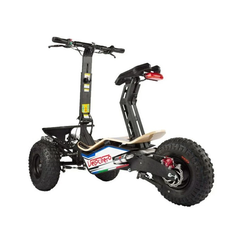 Трехколесный электросамокат Velocifero Mad Truck 1600W - необычный внешний вид и расположение трех 14 дюймовых колес привлекает внимание пользователей сразу. Модель смотрится дорого и презентабельно. Езда на электросамокате разнообразит проведение свободных вечеров и сэкономит время современного райдера в бешенном ритме жизни. Максимальная грузоподъемность 150 кг обеспечивается стальной рамой (75 кг).