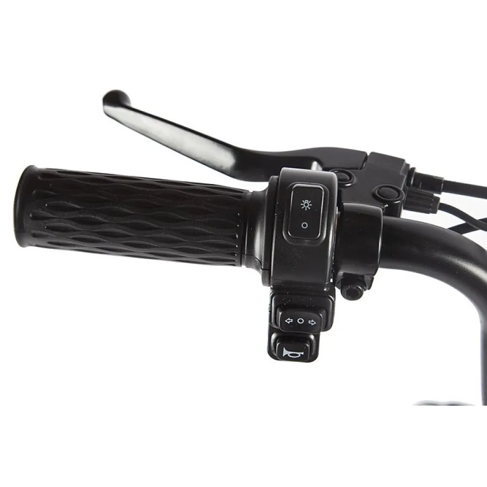 Мощность двигателя составляет 350 Вт, достаточная для развития скорости 25 км/час. Удобство и комфорт езды обеспечены мягким вместительным сиденьем, рассчитанным на двоих. Повторяя анатомические части тела материал изготовления и конструкционные особенности сиденья снижают нагрузку на позвоночник, снимают утомление.