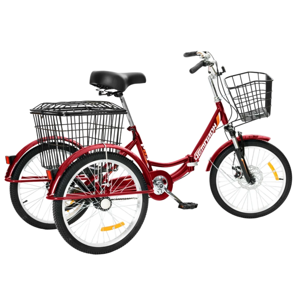 Трехколесный велосипед для взрослых РВЗ Чемпион 20" 1 скорость (складной) красный