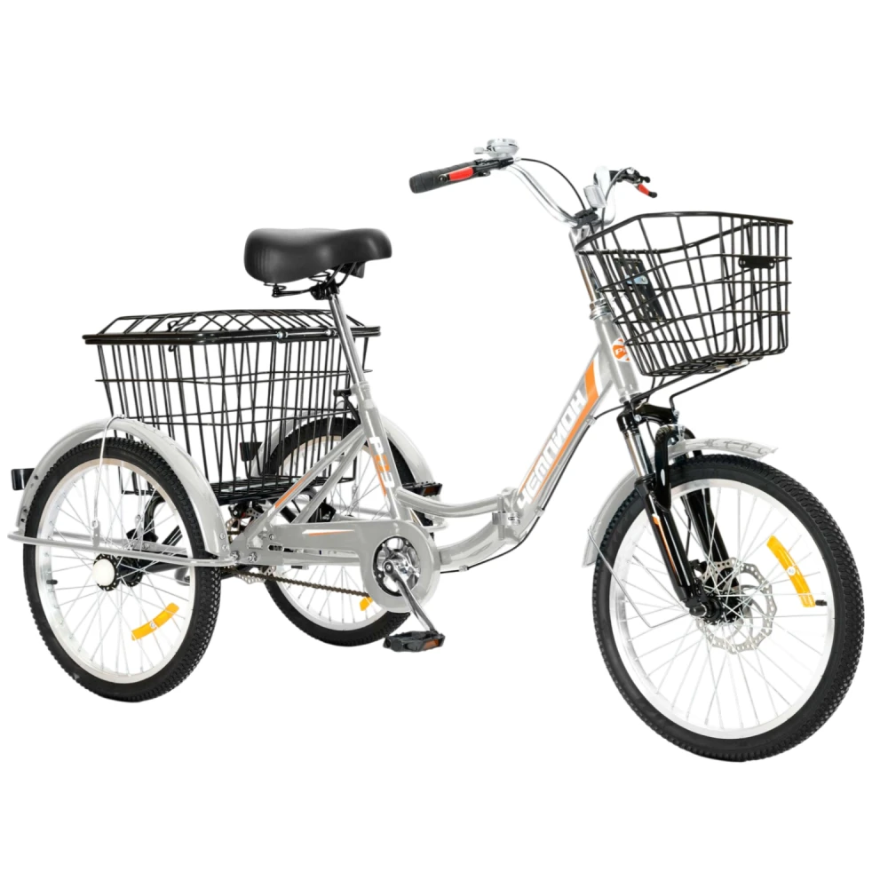 Трехколесный велосипед для взрослых РВЗ Чемпион 20" 1 скорость (складной) серебристый